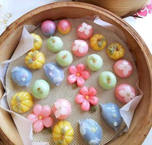 Một trong những biểu tượng của Trung Thu Hàn Quốc là 송편 (Songpyeon) – bánh gạo truyền thống với nhân mè, đậu, hạt dẻ… được nặn thành hình trăng lưỡi liềm.